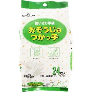 ショーワ ビニール使い捨て手袋 おそうじでつかっ手 24枚入 フリーサイズ