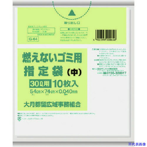 ■サニパック 大月都留指定袋家庭用不燃 中 10枚 とって付き 透明《50冊入》〔品番:G64〕【1517660×50:0】[送料別途見積り][掲外取寄][店頭受取不可] | |