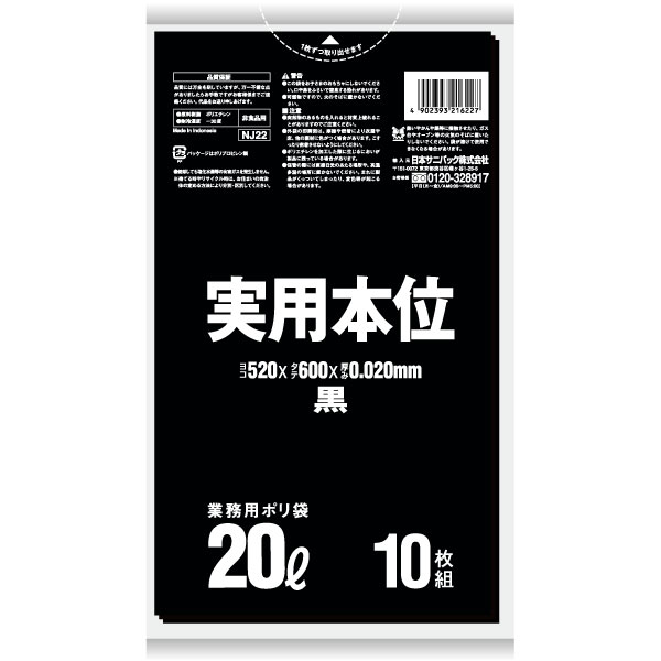 [同一メーカー3ケース以上送料無料] 実用本位ポリ袋 NJ22[20L]黒 [厚み0.020mm] [10枚×60冊] [日本サニパック正規代理店] [事業者限定] | |