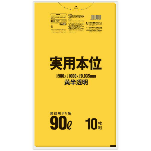 日本サニパック 実用本位ポリ袋 黄半透明 90L NJ95 1パック(10枚) | |