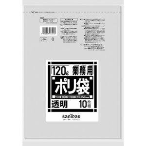 日本サニパック 業務用ポリ袋 ダストカート用 120L 透明 10枚入り L−94 (ゴミ袋) ( 4902393243940 ) | |
