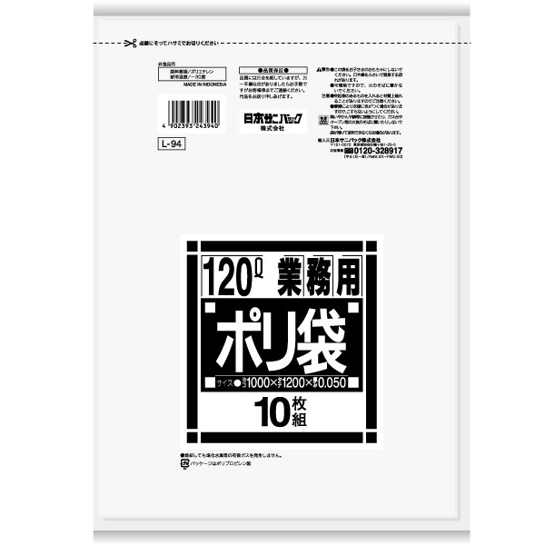 [同一メーカー3ケース以上送料無料][事業者限定] L-94[120Lカート用]透明[0.050mm]10枚×20冊)[日本サニパック正規代理店] | |