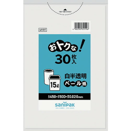 サニパック おトクな!ペール用ゴミ袋 15L 白半透明 30枚 U19T | |