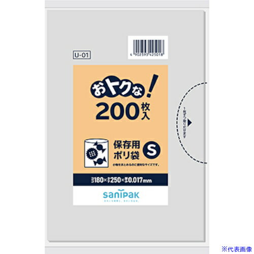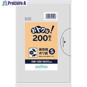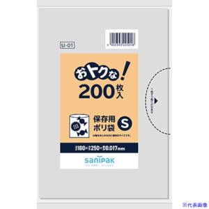 ■サニパック U01おとくな保存袋薄手S透明200枚《24冊入》〔品番:U01〕【1350934×24:0】[送料別途見積り][掲外取寄][店頭受取不可] | |