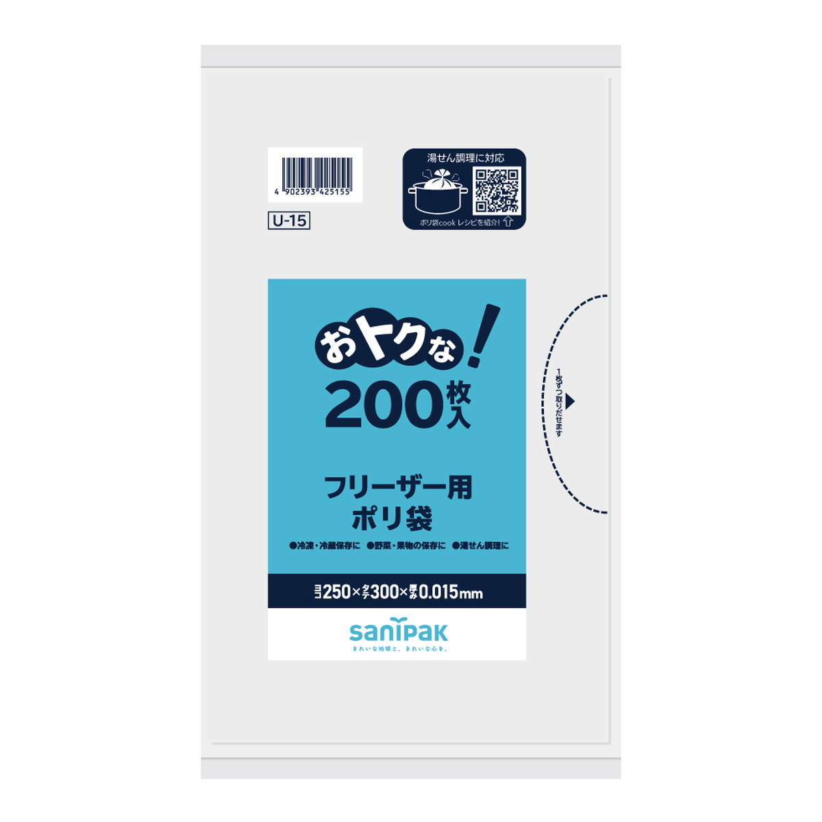日本サニパック おトクな!フリーザー用ポリ袋 200枚入 U15 半透明 保存袋の増量タイプ ( 4902393425155 ) | |