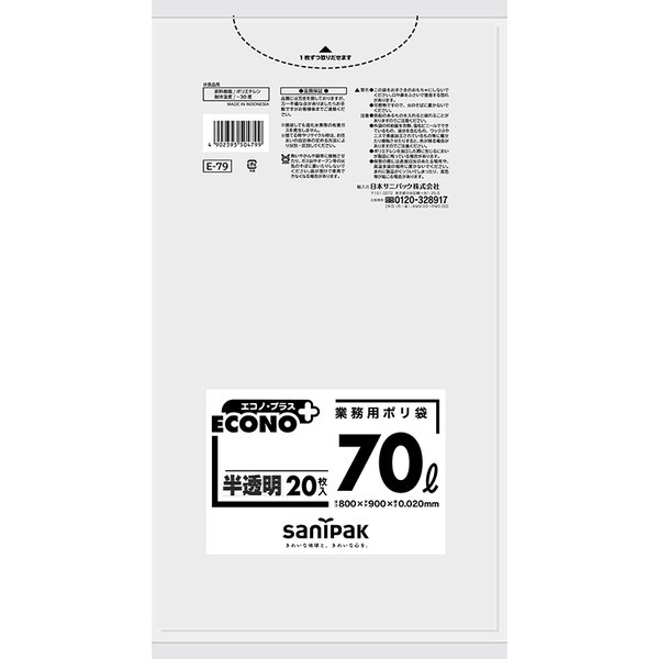 [同一メーカー3ケース以上送料無料][事業者限定] エコノプラス E-79[70L]半透明[0.020mm][20枚×15冊][日本サニパック正規代理店] | |