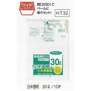 サニパック HT32容量表記入り白半透明ゴミ袋30L 10枚