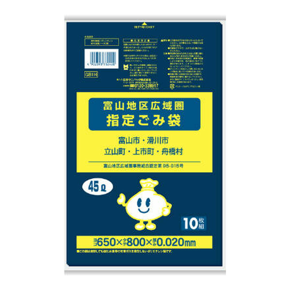 (送料無料・まとめ買い×80個セット)日本サニパック GB1H 富山地区広域圏 指定ごみ袋 45L 黒半透明 10枚入 ごみ袋 | |
