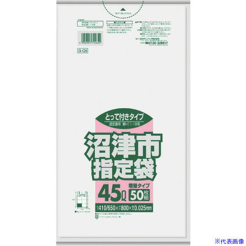 サニパック 沼津市指定袋家庭用 45L 50枚 とって付き 半透明 《10冊入》(品番:G-Q5)(注番1517624×10]・(送料別途見積り,法人・事業所限定,取寄) | |