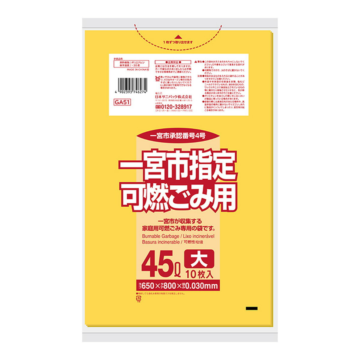 日本サニパック 一宮市指定袋 可燃ごみ用 45L 10枚 | |