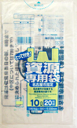 日本サニパック 名古屋市指定 一般家庭用 資源専用袋 とって付き 透明 10L G−1R 1パック(20枚) | |