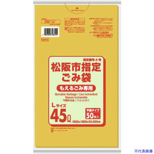 サニパック 松阪市指定袋家庭用可燃 45L 50枚 黄半透明 《12冊入》(品番:GM15)(注番1517677×12]・(送料別途見積り,法人・事業所限定,取寄) | |