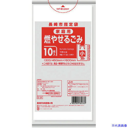 サニパック 長崎市指定袋家庭用可燃 20L 10枚 とって付き 半透明 《60冊入》(品番:G-3A)(注番1516112×60]・(送料別途見積り,法人・事業所限定,取寄) | |