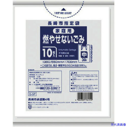 サニパック 長崎市指定袋家庭用不燃 30L 10枚 とって付き 半透明 《60冊入》(品番:G-5P)(注番1517606×60]・(送料別途見積り,法人・事業所限定,取寄) | |