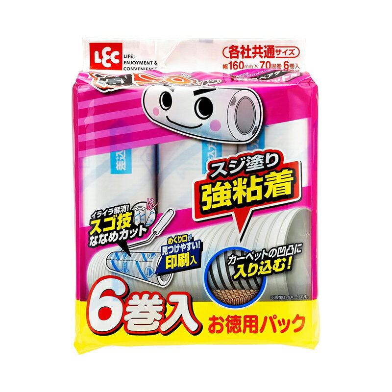 レック 激コロスゴ技カットスジ強粘着 6巻入 [掃除用品 カーペット 床 リビング 洗面所 コロコロ 髪の毛 各社共通] S00004 爆買 | |