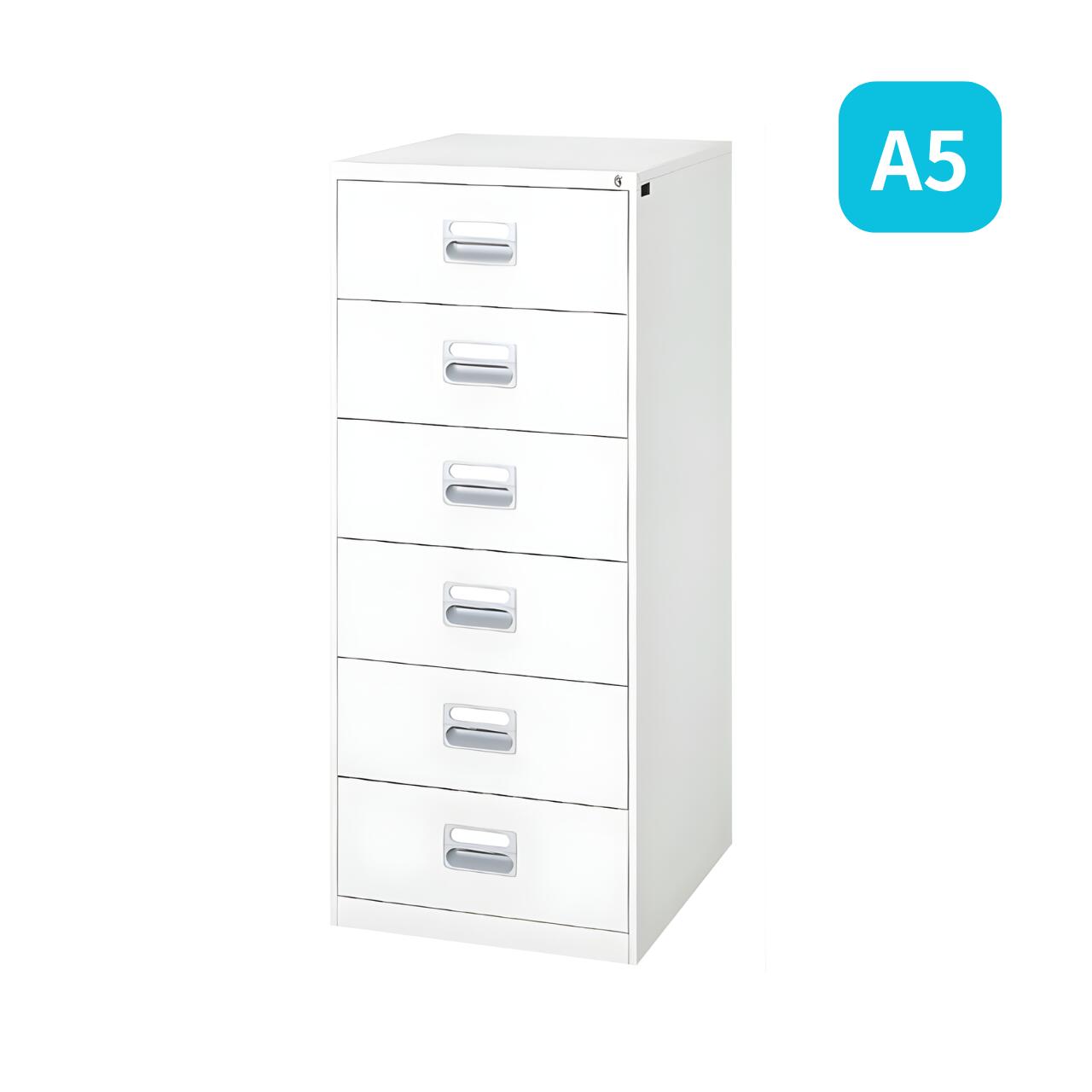 ファイリングキャビネット A5サイズ引出し 2列6段 ホワイト色 W561×D620×H1335mm A5-26W | |