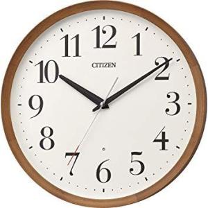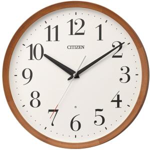 シチズン 電波 壁掛け時計 連続秒針 木枠 ブラウン φ320x53.6