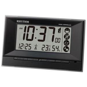 【送料無料】リズム(RHYTHM) 目覚まし時計 電波時計 デジタル 温度 湿度 カレンダー 熱中症 色:ブラック、サイズ:8.8x14.3x4.2cm | |