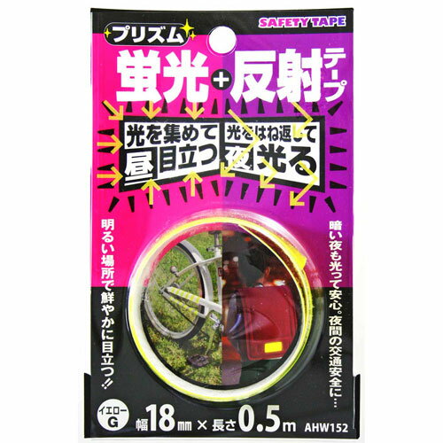 【メール便可】WAKI 和気産業 SAFETY TAPE プリズム蛍光+反射テープ イエローG 幅18mm×長さ0.5m AHW152 | |