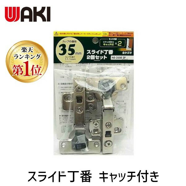 【メール便可】WAKI 和気産業 スライド丁番 キャッチ付 カップ径35mm 全かぶせ 2個入 NS-3550 2P | |