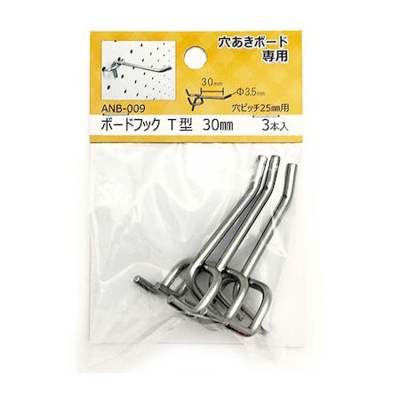 和気産業 穴あきボード専用ボードフックT型 フック径φ3.5mm?フック長さ30mm ANB-009 3本 | |