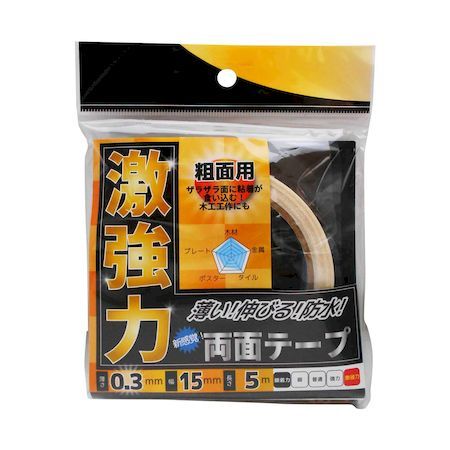 【メール便送料無料】WAKI 和気産業 激強力両面テープ 粗面用 薄さ0.3mm×幅15mm×長さ5m WKG-004 | |