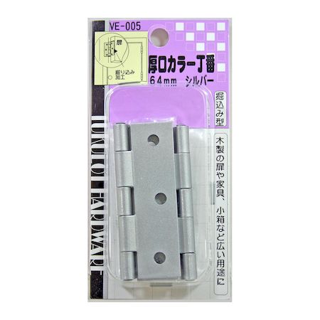 【メール便対応】和気産業(WAKI) 厚口カラー丁番 VE‐005 64mm シルバー 【品番:VE-005】 | |