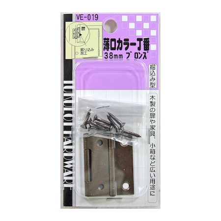 【メール便選択可】和気産業 薄口カラー丁番 ブロンズ 2枚入 38mm VE-019 | |