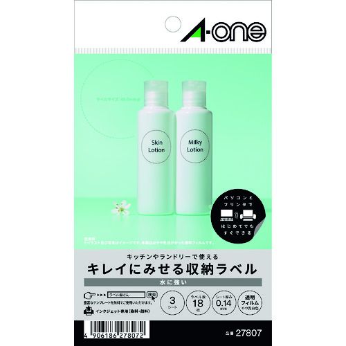 3M エーワン キレイにみせる収納ラベル インクジェット 透明フィルム 透明 A6 6面 1袋(3シート入) 27807 1PK | |