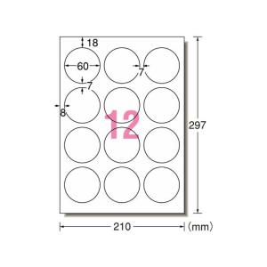 エーワン インクジェット用光沢紙ラベル 〜60mmφ表示〜(A4サイズ・12面・10シート) 29225 | |
