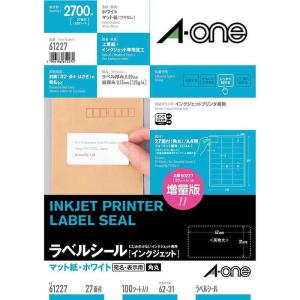 (LINEクーポン有)翌日出荷 A-one エーワン 61227 ラベルシール インクジェット A4 27面 四辺余白付 角丸 100シート入 4906186612272 マット紙 | |