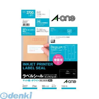 【ゆうパケット配送対象】エーワン ラベルシール[インクジェット]27面 61227(ポスト投函 追跡ありメール便) | |