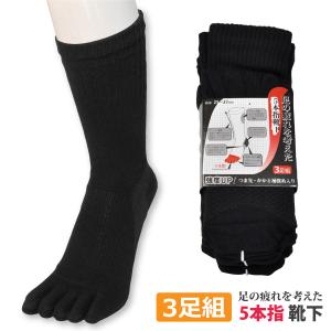 五本指靴下 メンズ 3足セット 足の疲れを考えた クルー丈 黒 25cm-27cm 富士手袋 | |