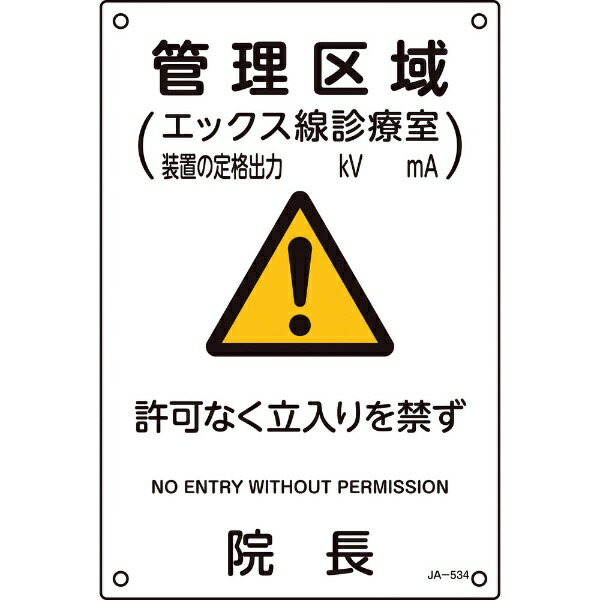 ■緑十字 JIS放射能標識 管理区域・エックス線診療室・許可なく立入りを禁ず・院長 JA-534 300×200〔品番:392534〕【1138161:0】[送料別途見積り][掲外取寄][店頭受取不可] | |