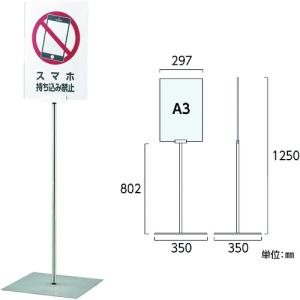 日本緑十字社 ポスタースタンド A3/縦型タイプ FSS-A3T 高さ1250×ベース幅350mm ステンレス製 屋内用 365083 | |