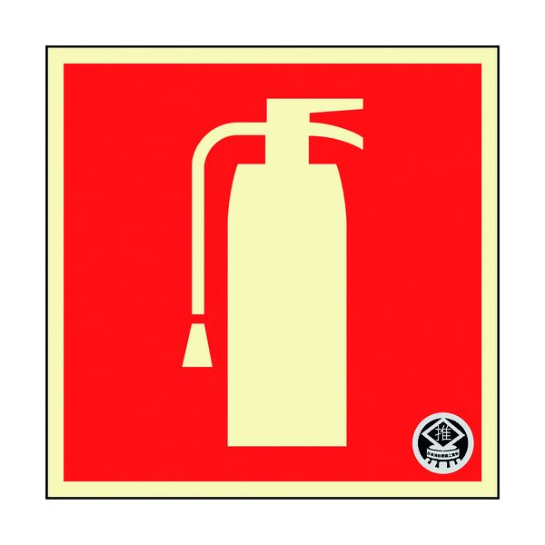 日本緑十字社 中輝度蓄光ステッカー標識 消火器マーク FR-1005 90×90mm 厚み0.3mm PET 066025 1枚 | |