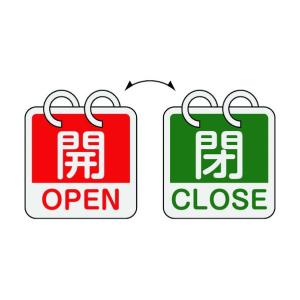 緑十字 バルブ開閉札 開・OPEN(赤)⇔閉・CLOSE(緑) 2枚1組タイプ 65×65mm アルミ製 162052 | |