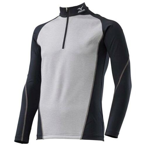 ミズノ 防寒アンダー 防風ストレッチハイネックハーフジップシャツ アロイグレー M