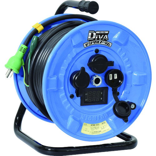NICHIDO 電工ドラム 屋外型 デジタルドラム 電圧電流メーター付 過負荷漏電保護兼用ブレーカ付 30m ( NPDMW-EK33 ) 日動工業(株) ( F6P04 ) | |