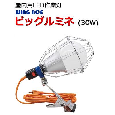屋内用 LED電球付 クリップランプビッグルミネ ( LED 30W )品番 : LA−3005−LED【 全光束 3500LM 】【 照射角 270度 】【 5mコード付き 】ウィングエース(WING ACE) | |