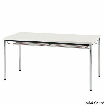 TOKIO ミーティングテーブル 丸脚棚付 1500X600mm ホワイト