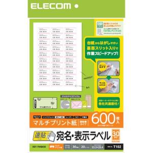 【お取り寄せ】エレコム 宛名表示ラベル 速貼 30面 20シート EDT-TMQN30 マルチプリンタ対応ラベルシール 粘着ラベル用紙 | |