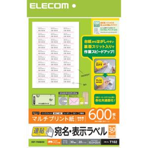 エレコム 宛名表示ラベル 速貼タイプ ラベルシール ホワイト 600枚(20シート×30面) ELECOM EDT-TMQN30 | |