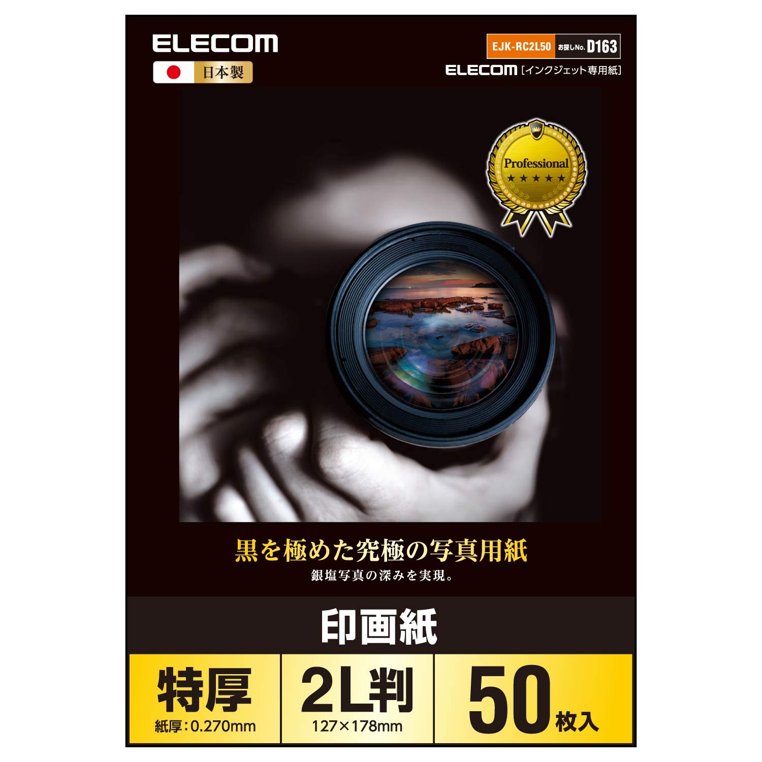 エレコム 写真用紙 2L 50枚 光沢 印画紙 特厚 0.270mm 日本製 【お探しNo:D163】 EJK-RC2L50 | |