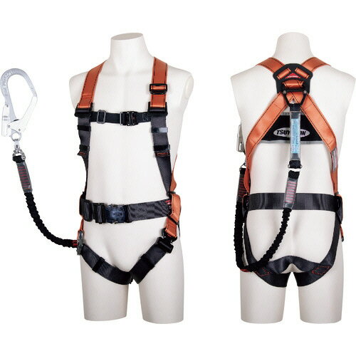 TSUYORON コアハーネス 胴ベルト付き シングルランヤード付き 伸縮式ノビロン(BK) オレンジ Mサイズ ▼163-3476 TH-502-NV93SV-OT-OR-M-R23-BX 1本 | |