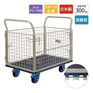 金象 静キャリー NS-300 金網付L フットブレーキ付 積載荷重300kg カゴ付き スチール台車 キャスター付き メッシュ 低騒音 静か かご台車 | |