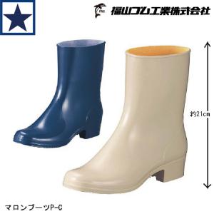 長靴 福山ゴム マロンブーツ P-C ショート PVC レインブーツ アイボリー ネイビー | |