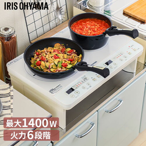 【送料無料】アイリスオーヤマ 2口IHコンロ 1400W 脚付 ホワイト IHK-W12S-W | |