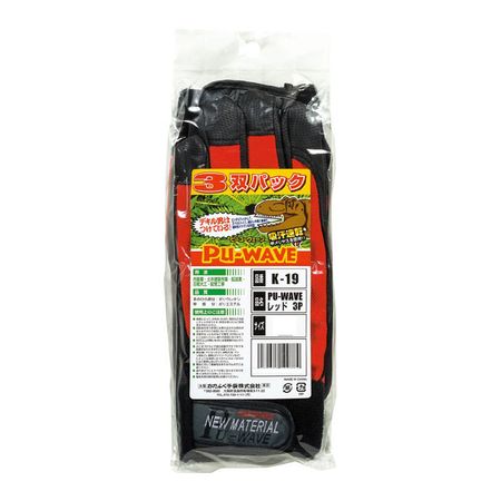 おたふく手袋 K-19 PU-WAVE 合皮手袋 3双組 Lサイズ レッド ● | |
