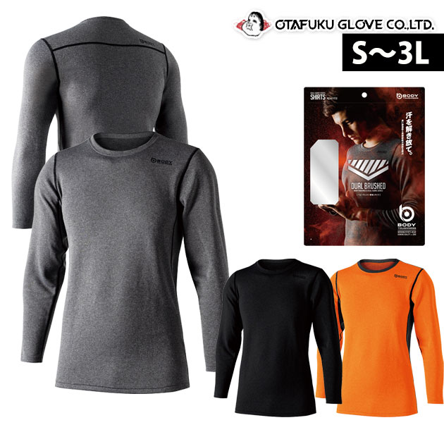 【メール便対応】JW-180 デュアルブラッシュドヘビーウェイトクルーネックシャツ 長袖 インナー アンダーシャツ オレンジ ブラック JW180 冬用 メンズ 裏起毛 保温 ストレッチ おたふく手袋 ボディータフネス バイク 自転車 現場 作業着 作業服 | |